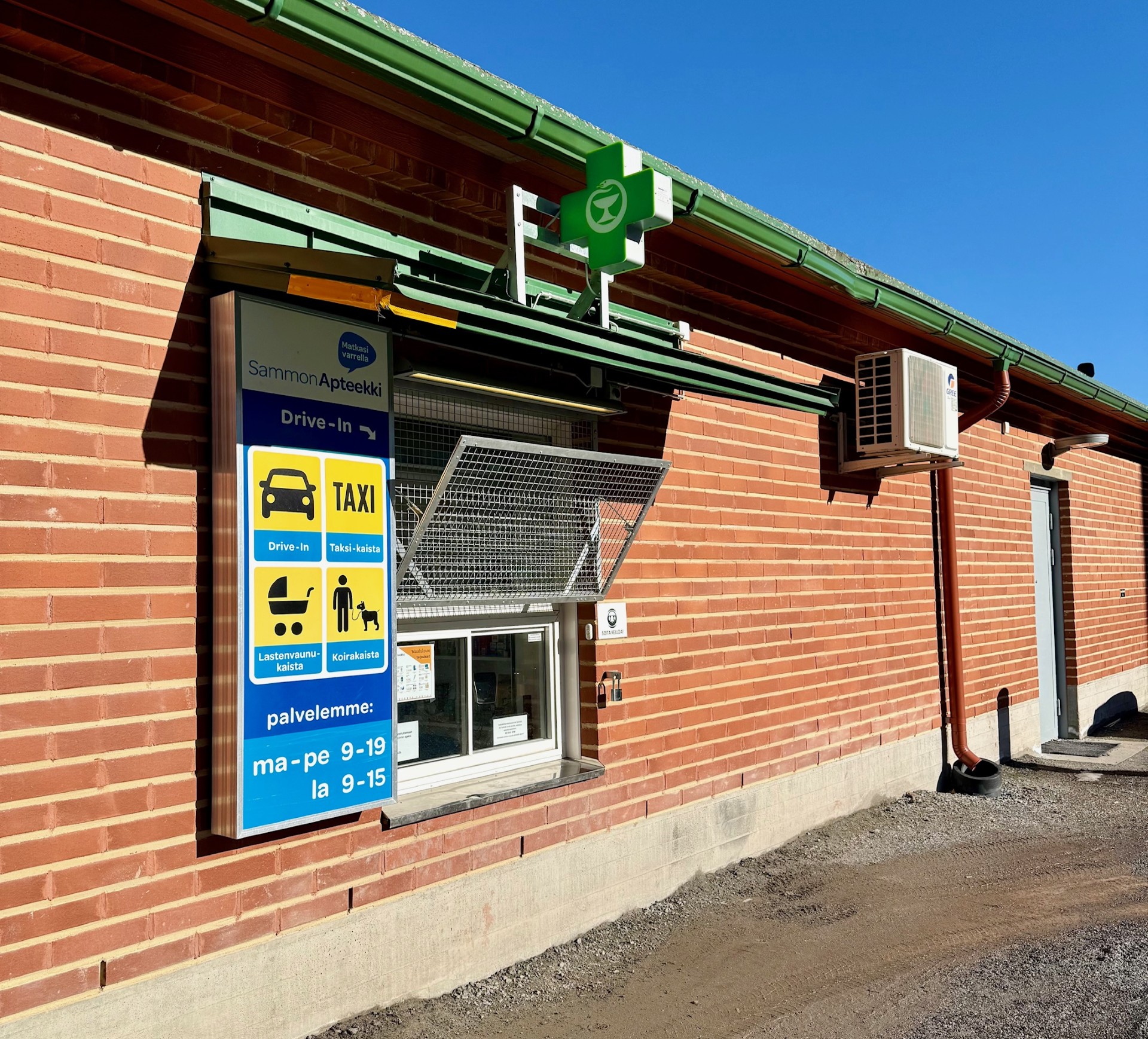 Sammon Apteekin Drive-in-palvelu sijaitsee apteekin takana. Voit asioida sujuvasti omalla autolla tai taksilla – myös lastenvaunujen tai lemmikin kanssa asiointi onnistuu vaivattomasti.